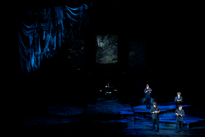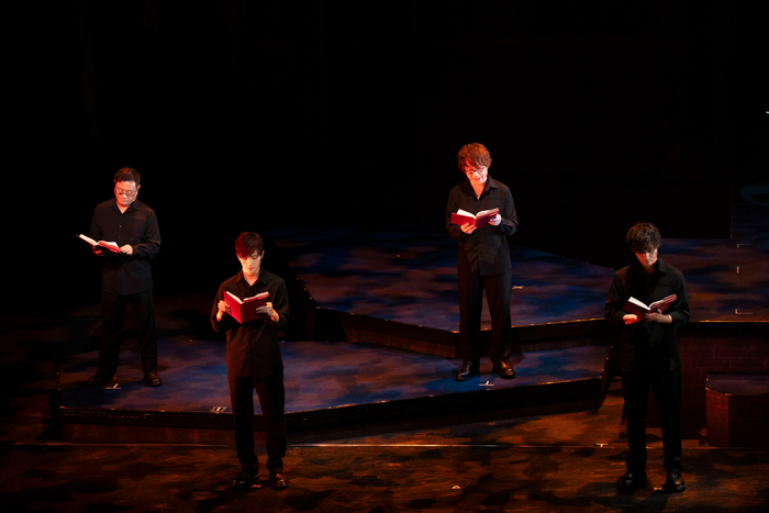 一人ひとりのリーディングに集中できる短編が披露された後は、キャスト全員が集結して1つの話を演じる。本番までに台本を完成させられなかった売れない演劇ユニットが劇場に伝わるいわくつきの台本を探しだし……という内容で、リアルとフィクションが溶け合っていくような感覚にゾクッとする。4人のキャストによるイキイキとした掛け合いが魅力的だ。また、ソロのリーディングでは動きが少なかったぶん 4人がステージ上で右往左往する様子に緊張感が高まり、さらに引き込まれた。 演じるキャストによってキャラクターの印象や関係性も少しずつ変わると予想されるため、他の回も見てみたいと思わされた。