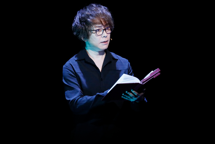 今回はオムニバス形式で、各キャストが1人で語る物語が2つずつ、全員で語る物語が1つ展開される。立体感のある音響とリーディングのイメージを膨らませる映像や照明により、没入感も充分。恐怖や驚きを与える仕掛けもあり、キャストの言葉にびくついたり恐々と辺りを見回したりする観客も散見された。