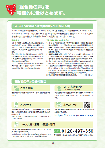 コープ共済連(日本コープ共済生活協同組合連合会、代表理事理事長:和田 寿昭)は、組合員からいただいた「声」や、「声」に基づいて改善された内容等をまとめた「組合員の大切な声」報告集を毎年発行しています。