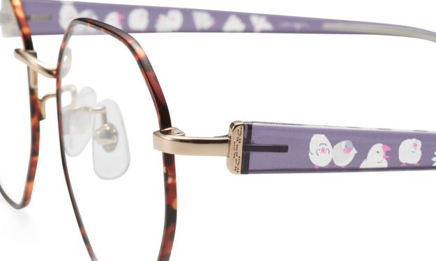 すべてのフレームのテンプルには、さまざまな鳥の絵をプリントしています。