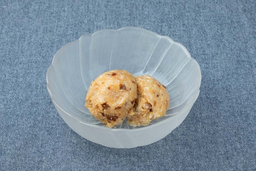 作品紹介:海外旅行で感じた健康や日本料理への注目で、食事制限がある方でも食べやすい健康的なスイーツです。こんにゃくの食感を活かして、抹茶アイスと黒糖こんにゃくの組み合わせで作りました。