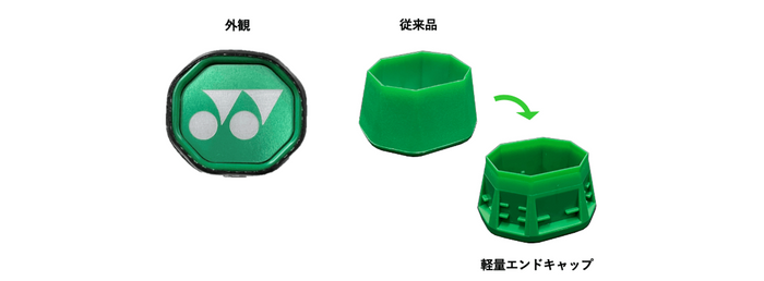 エンドキャップを肉抜きすることで従来品よりも軽量化。重量配分を従来よりもヘッド寄りにすることが可能になり、最大ヘッドヘビー設計を実現。