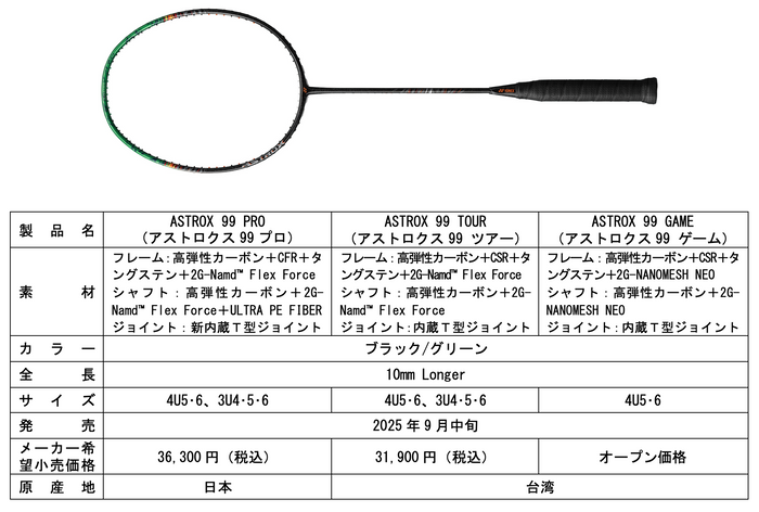 強烈スマッシュと連続攻撃でゲームを支配する 圧倒的パワーと球持ち性能が向上したバドミントンラケット 「ASTROX 99シリーズ」 2025年9月上旬より発売