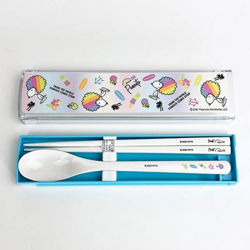 カラフルさが人気のレインボーシリーズにも、お箸セットが揃いました。アフロヘアのスヌーピーが人気のデザインで、デザインも2種類ご用意しています。どちらもお箸&スプーンのセットになっているので、丼ランチなどにも活躍しますよ♪