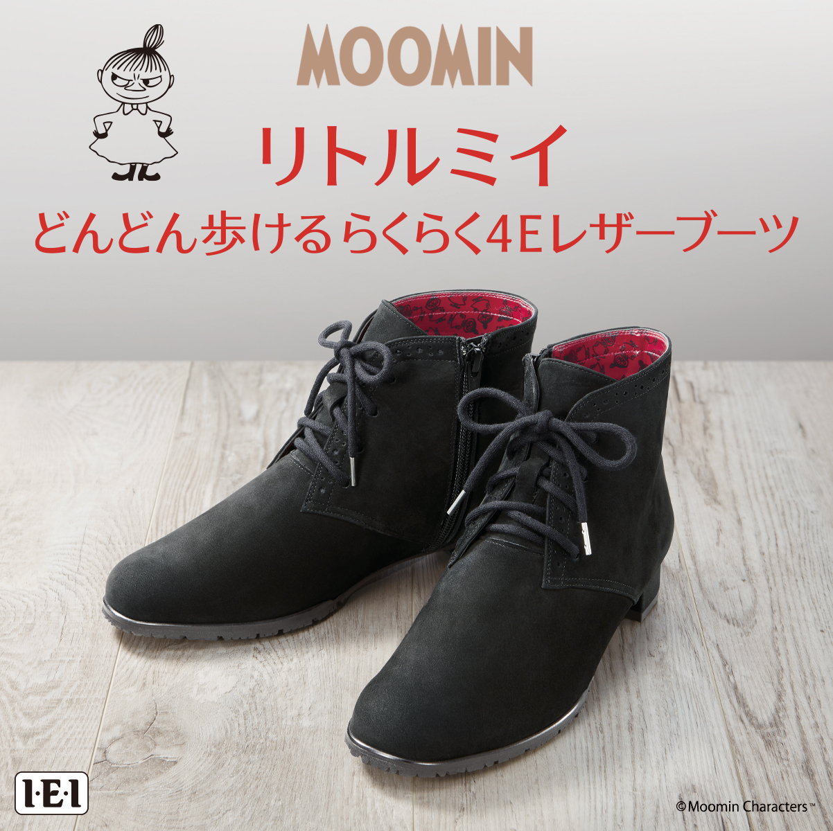 インペリアル・エンタープライズ株式会社(代表取締役社長:原 良郎、所在地:東京都荒川区)は、リトルミイのデザインをちりばめたあったかショートブーツ<リトルミイ どんどん歩けるらくらく4Eレザーブーツ>を、I・E・I オリジナルショップにて販売いたします。