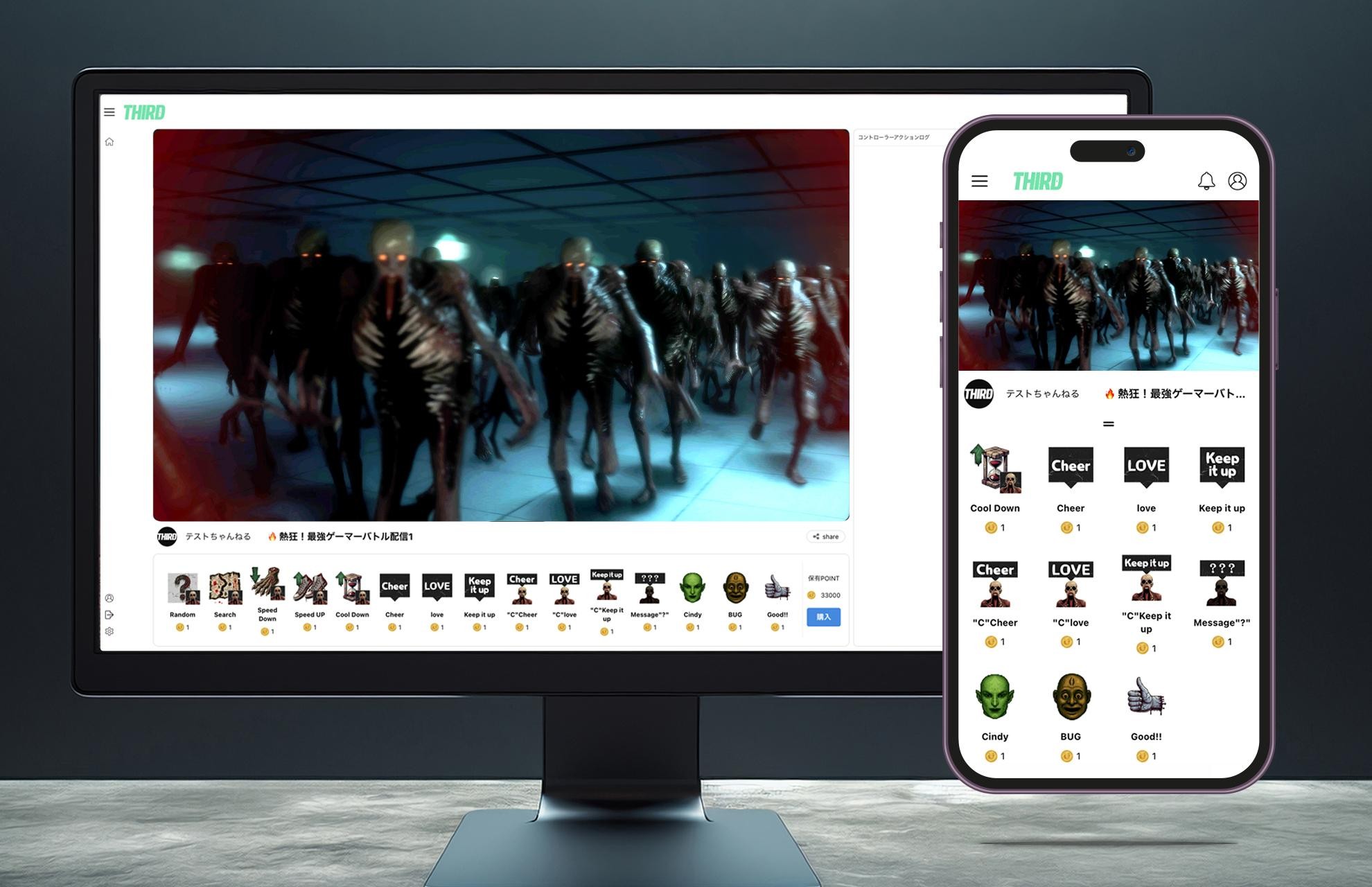 「THIRD」を搭載したゲームでは、視聴者はギフティングなどを通じて、