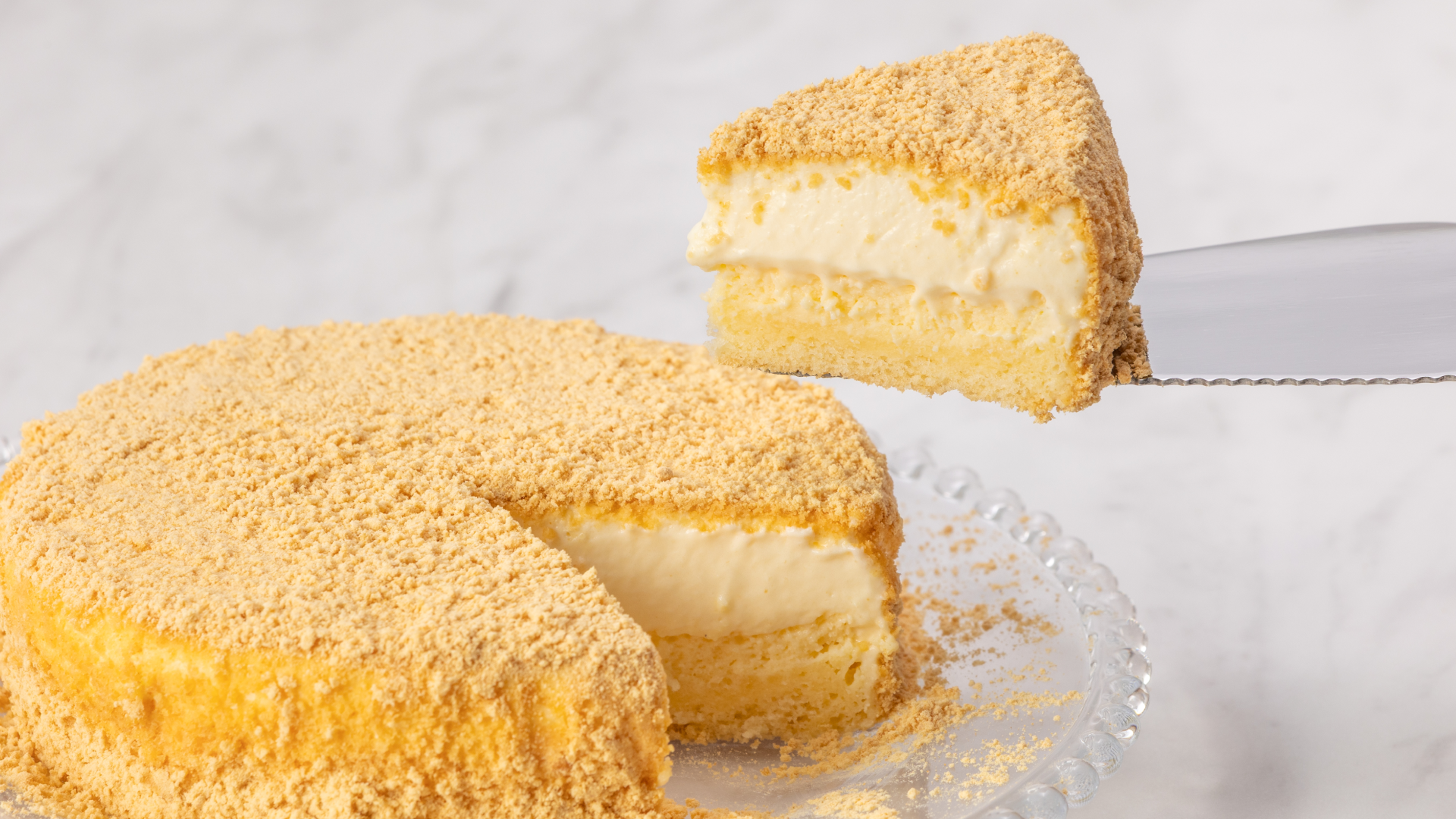 愛知県産きなこクラムを使用し、マスカルポーネクリーム、濃厚なベイクドチーズケーキを三層構造に仕立てました。ふわふわ、しっとりとした食感と口どけ、優しい甘みと香ばしさが調和する、ありそうでなかった“新食感”のスイーツです。