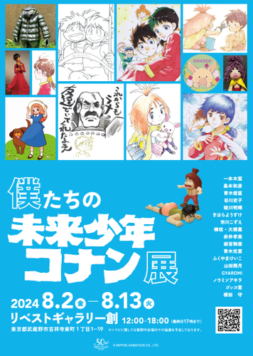 日本アニメーション株式会社(本社:東京都中央区、代表取締役社長:石川和子)がアニメーション制作・ライセンス展開を行う『未来少年コナン』のトリビュートイベント「僕たちの未来少年コナン展」の開催が決定いたしました。2024年8月2日(金)から8月13日(火)の期間、リベストギャラリー創(所在:東京都武蔵野市)にて開催いたします。本イベントは、日本アニメーション創業50周年を記念して、リベストギャラリー創が主催して実施するものです。