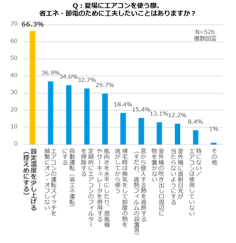 一方で「定期的にエアコンのフィルターを掃除する(32.7%)」、「室外機の吹き出し口周辺に物を置かない(13.1%)」など、その他の工夫ポイントについては1~3割程度の実施にとどまっており、まだまだ工夫の余地は大きいと言えそうです。これからこうした節電術が多くの人に取り入れられることで、無理のない省エネ・節電習慣になっていくことが期待されます。