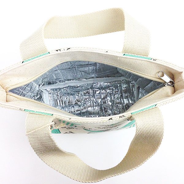 ファスナーを開くと、中はアルミ素材なので、保温&保冷もできちゃいます。