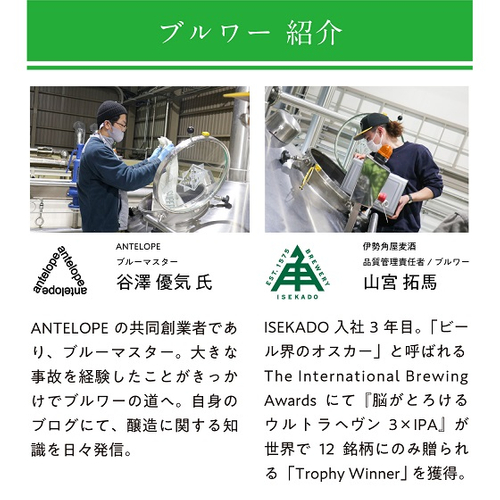 事業内容:伊勢神宮近くに本社・醸造所を構え、「伊勢から世界へ」をスローガンに掲げるクラフトビールブランド。創業当時から、無謀だと言われることや誰も挑戦していないことに積極的に取り組んで参りました。その結果、国内外の品評会で数多く受賞し、ビール界のオスカー賞と言われる最も歴史ある英国IBAで2017年・2019年・2021年と日本初3大会連続でゴールドメダルを受賞致しました。10種の定番商品をはじめとし、様々な種類のビールの製造を展開。豊かなビール文化を協創すべく世界基準で”本物”のビールをお届けしています。