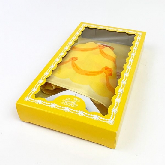 BOXから出すと、中のハンカチのデザインは中央にベルがデザインされていて、ベルと野獣のシルエットが♡