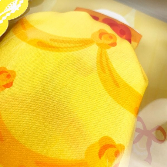 イエローの鮮やかなドレスは、ベルそのものですね。胸元のバラも再現されていて、まるで本当のドレスのようです。