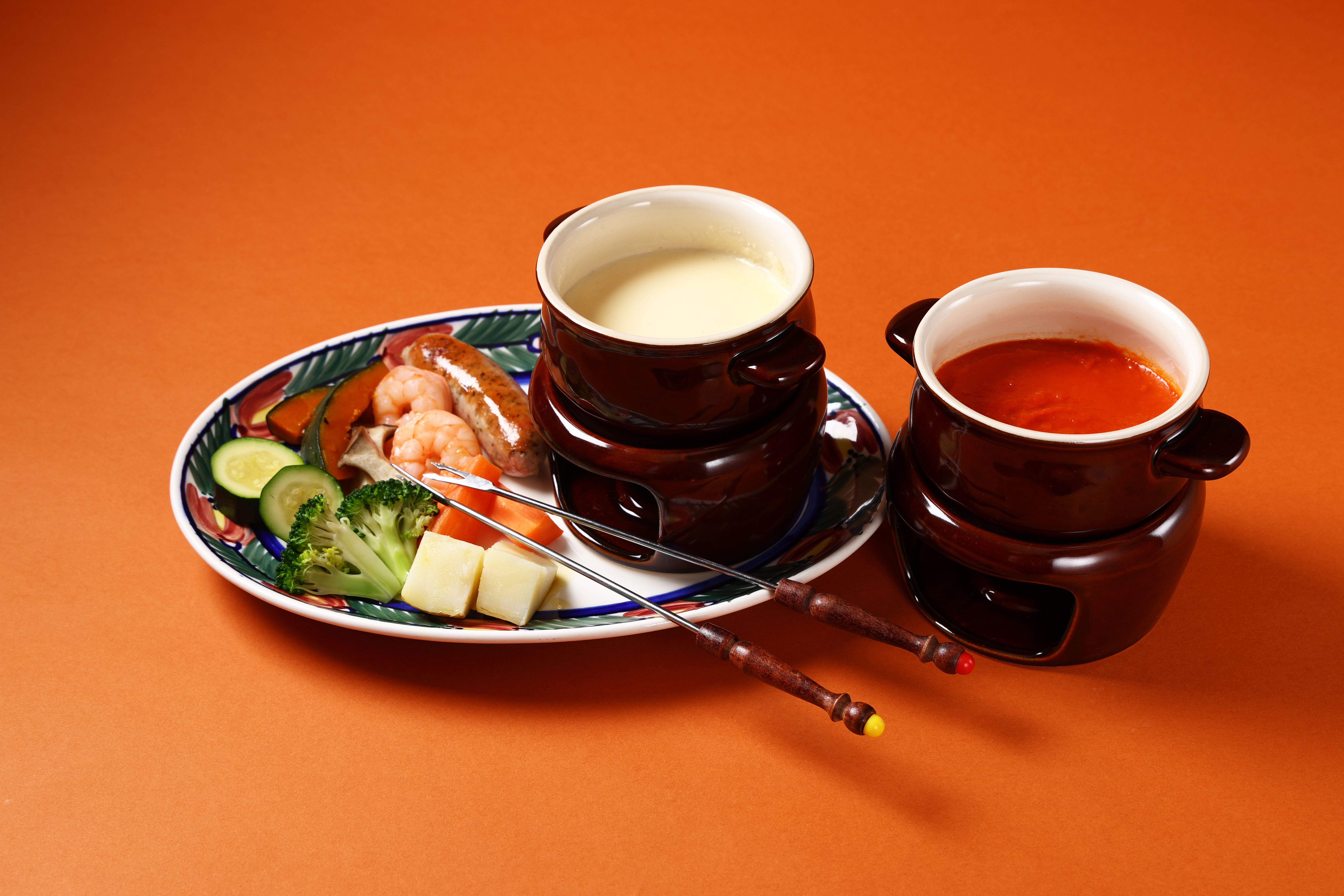 ランチでは淡路牛乳のチーズフォンデュや松井農園のトマトフォンデュ、ディナーではフランス・マルセイユのブイヤベースを楽しめます。