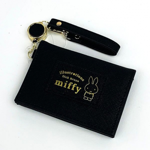 大人っぽいのをお探しの方には、こちらがオススメです。ミッフィーには珍しく、ブラックカラーのパスケース。金の箔押しがリッチですよね~♪リールのストラップもついています。