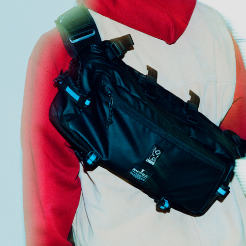 CHROMENo.1のスリングバッグKADETをコラボ特別仕様に。CHROMEの代名詞であるシートベルトバックルは取り外しが可能で、自転車のフレームバッグとして使用することができ、また、スリング・フレームバッグを両使いする際には、シートベルトバックルをサイドスリーブへ簡単に収納することもできる。ボディー素材には、Makavelicオリジナルのしなやかな防水素材を採用し、防水性能を高めた全天候型バックに仕上がっている。