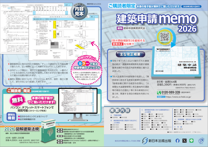 新日本法規出版株式会社(所在地:愛知県名古屋市中区、代表取締役社長:河合誠一郎)は、新刊『建築申請memo2026』(編集:建築申請実務研究会)を2026年1月22日(木)に発売いたしました!