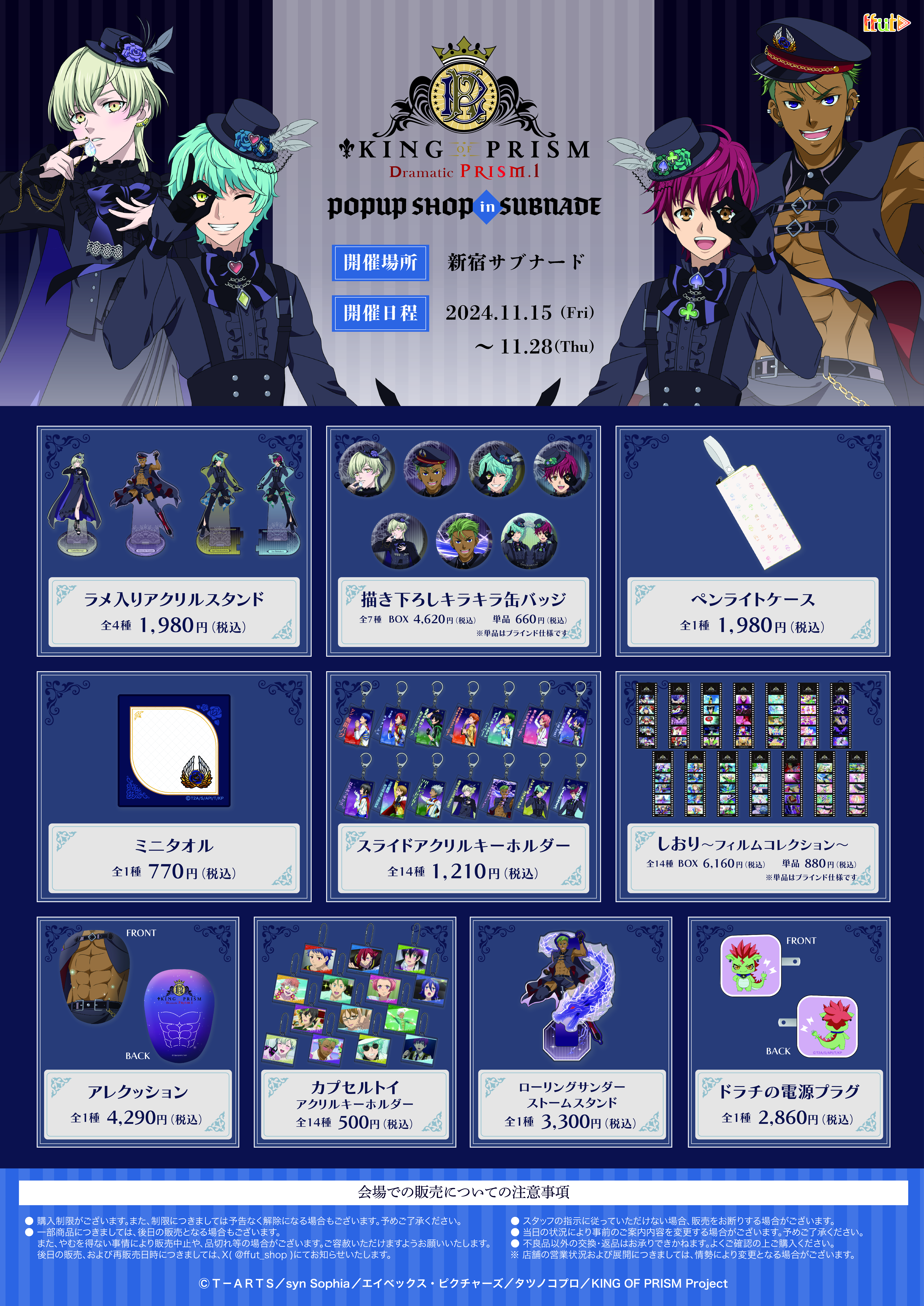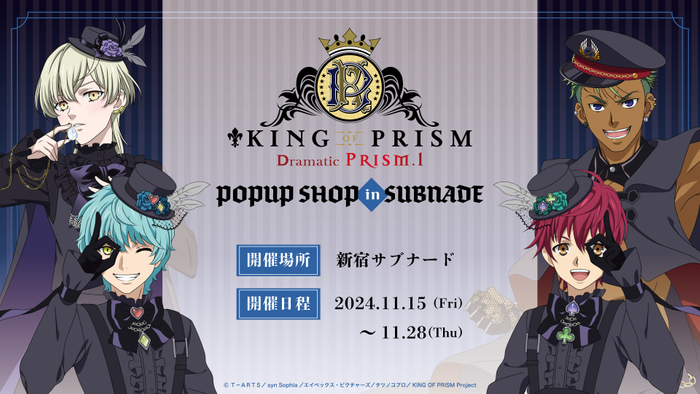 株式会社ブリスコラは新宿サブナードにて2024年11月15日(金)から『KING OF PRISM -Dramatic PRISM.1-』のポップアップショップを開催します。