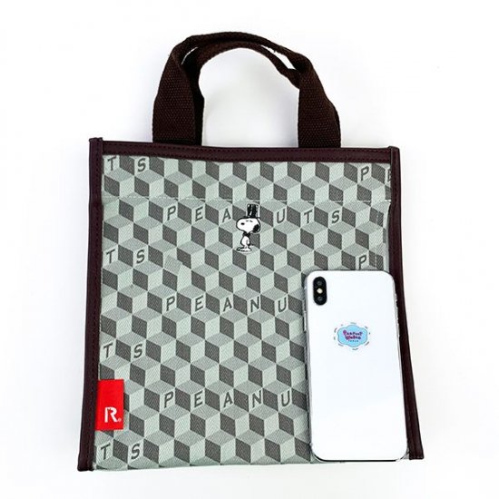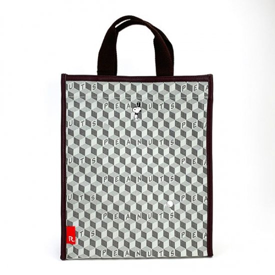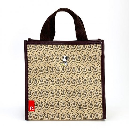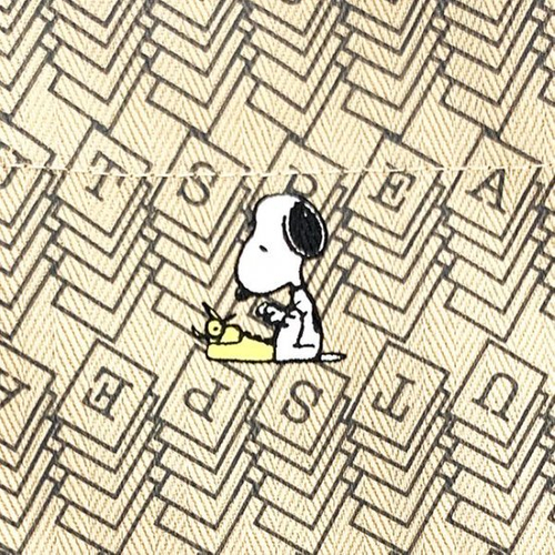 オシャレデシックな、スヌーピーのルートートのトートバッグです。オシャレに敏感な女性たちにも人気のルートートは、トートバッグの専門ブランド。カンガルーのお腹の袋のようなポケットが本体のサイドに付いたデザインから、この名前が付いたそうですよ。