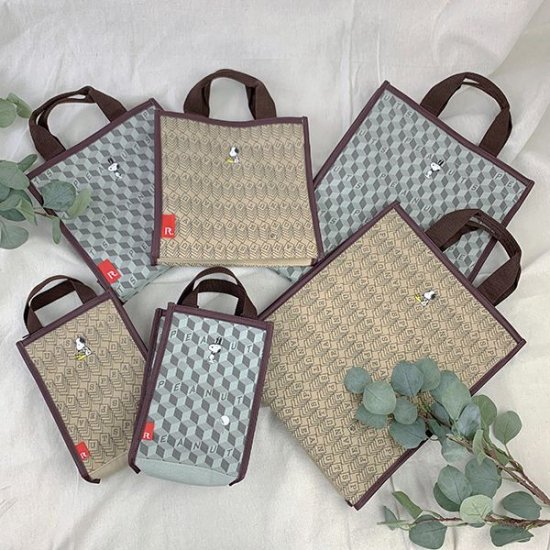 今日は、スヌーピーから秋冬に活躍のシックなバッグたちをご案内します。ベージュやグレーのベーシックなカラー展開で、コンサバテイストなバッグたちです。サイズも用途に合わせて3種類ご用意していますよ。