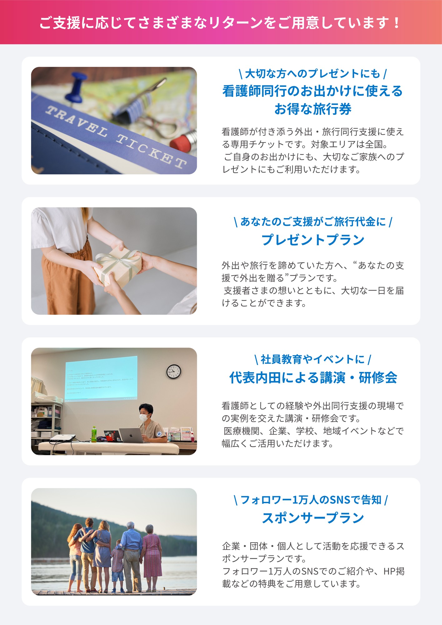 今回の取り組みを通じて、「看護師の外出・旅行同行支援」という選択肢を広め、病気や障がいがあっても「行きたい」をあきらめない社会づくりを目指しています。