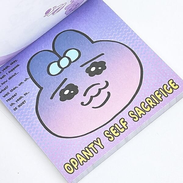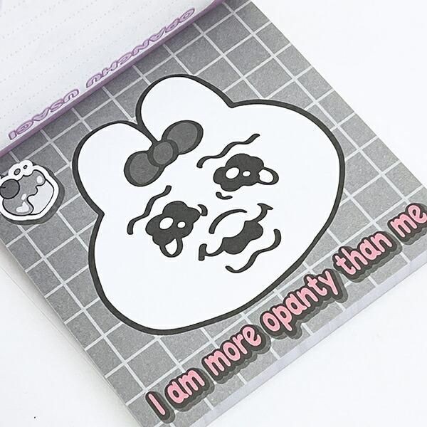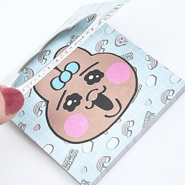 こちらは、おぱんちゅうさぎ ぷにぷにふせんです。こちらの付箋はただの付箋ではなく、なんと愛らしいおぱんちゅうさぎのお顔デザインぷにぷにカバーがついています。