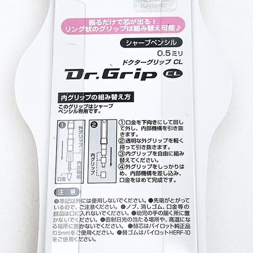 定番人気の0.5mmで、振るだけで芯が出てくる仕様になっております。リング状のグリップは取り替え可能になっておりお好きにアレンジも可能です。サイズ:14.2cm×1.4cm×1.4cm 素材:本体軸:PC・ABS / グリップ:シリコーン / 消しゴム:エラストマー