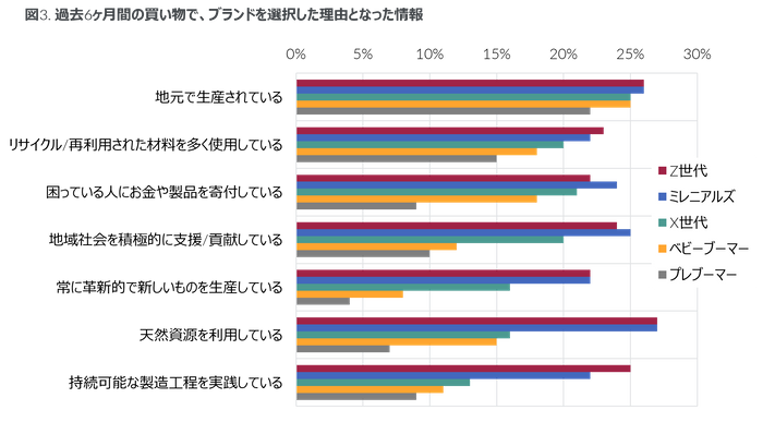 ・Z世代やミレニアル世代にとって「持続可能な製造工程」をしている事は、そのブランドを選ぶ理由になりうる。