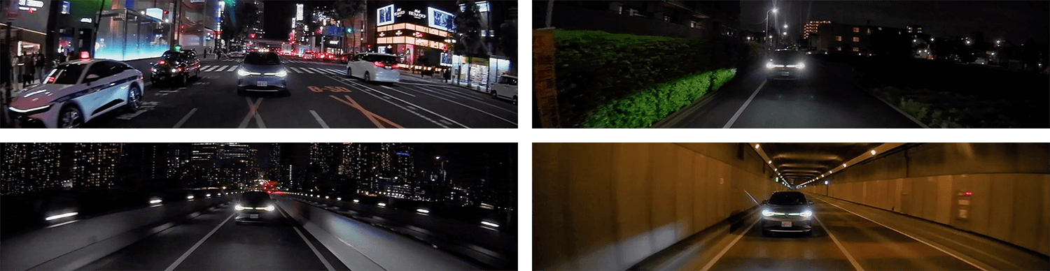 フロントカメラには、SONY社のSTARVIS2(TM)技術を搭載したイメージセンサーを採用。従来のSTARVISよりも暗所性能やダイナミックレンジが大幅に向上しています。ヘッドライトや周囲の明かりを取り込み夜間でも、ノイズを抑えた鮮明で自然な映像を録画します。