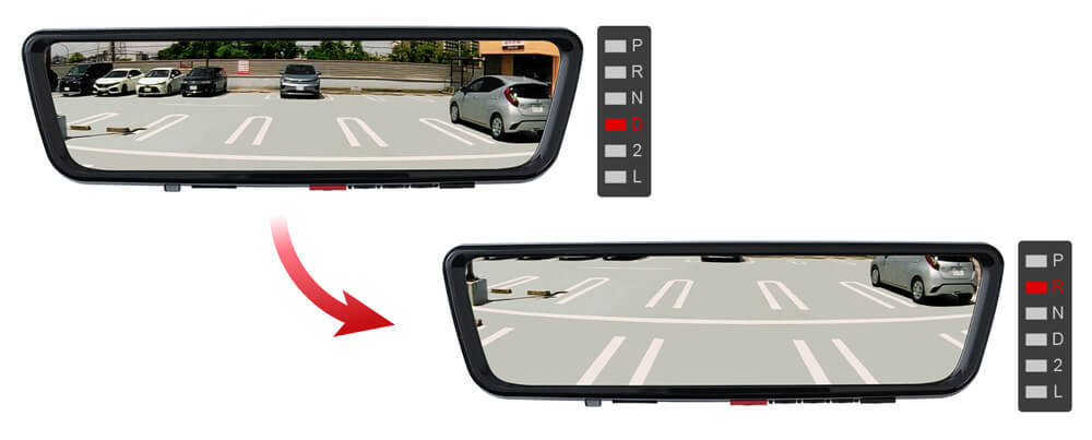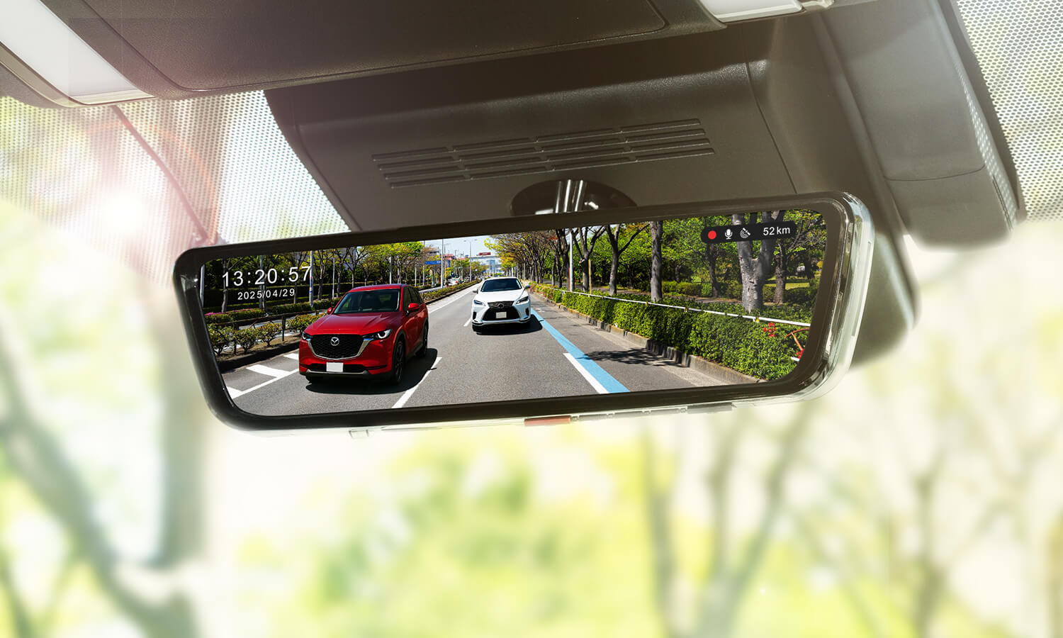 本製品は、状況に応じて「カメラモード」と「ミラーモード」の切替が可能です。 電子制御により、ワンタッチで素早く切り替える事ができます。