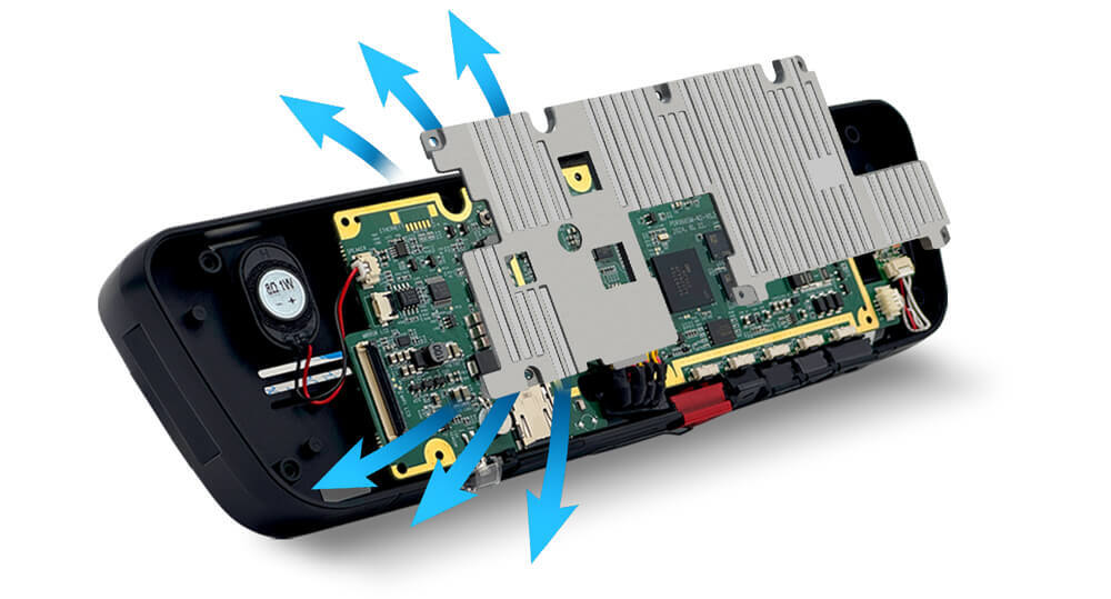 高速処理で発生するチップの熱をヒートシンク構造で効率的に放熱し、熱負荷を抑制。長時間の使用でも安定したパフォーマンスを実現します。