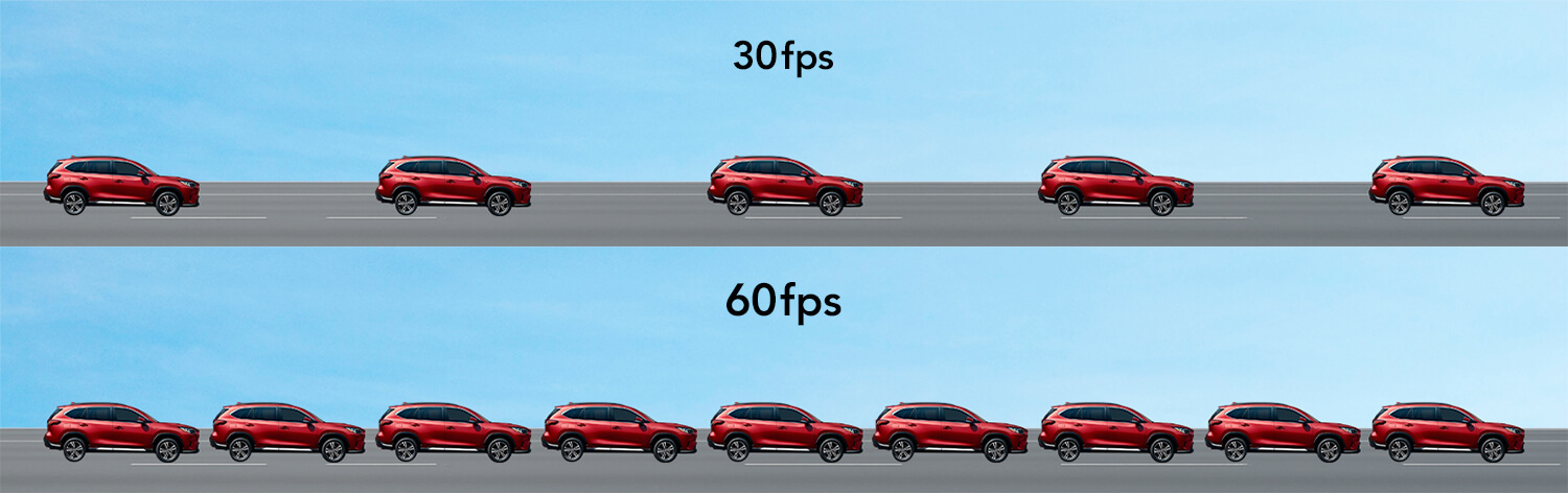 約60fpsの高フレームレートにより、一般的な30fpsに比べて映像がより滑らかで自然な映像を再現します。走行中の周囲の状況や後続車の動きもより鮮明に確認でき、高速道路や夜間走行時でもブレの少ない安定した映像を実現します。