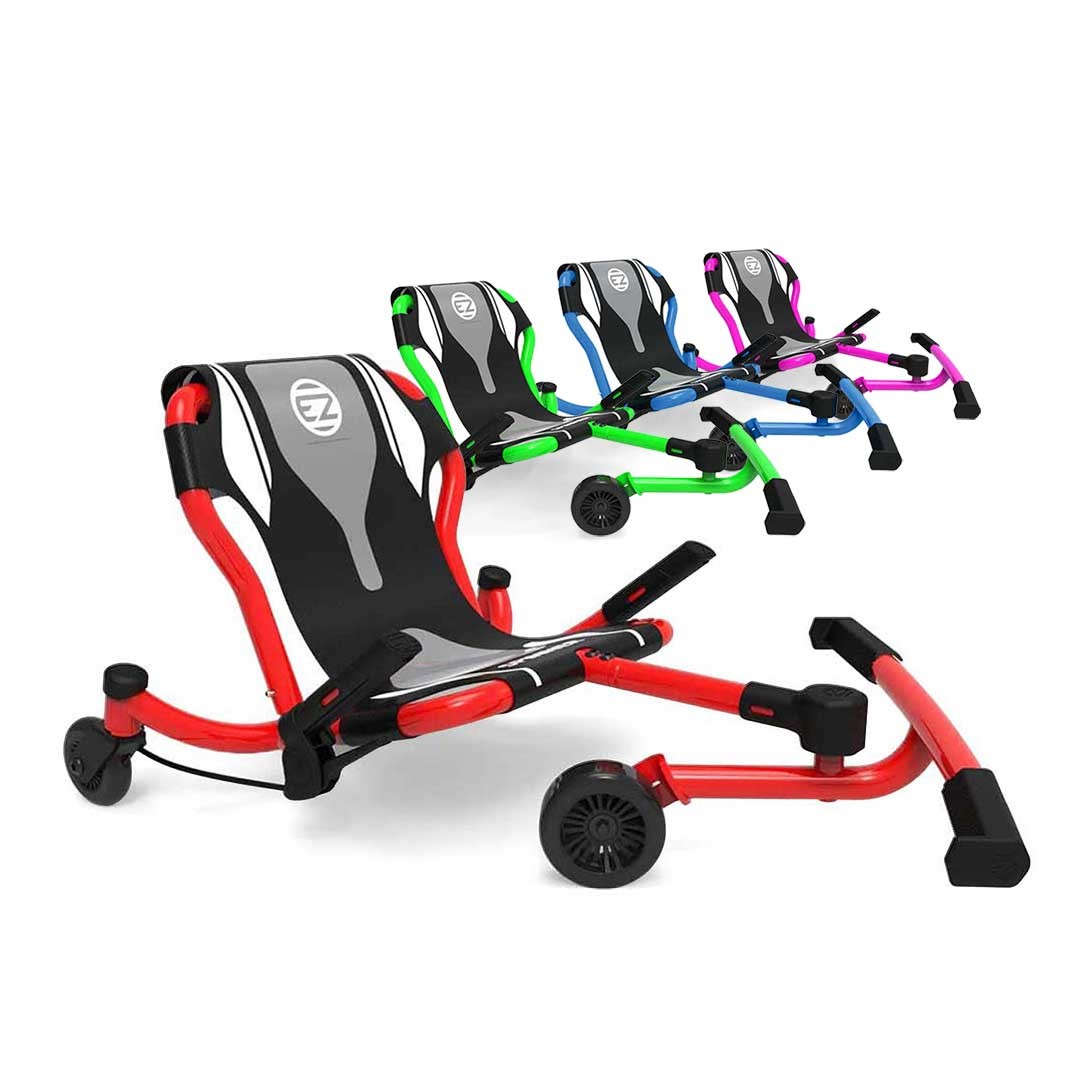 EzyRoller(イージーローラー)は、ペダルやチェーンがなく、足を左右に動かすだけでグングン進む不思議なカートです。<br>「どう動かせば思い通りに進むかな?」と、お子様が自ら試行錯誤することで思考力を刺激。<br>
