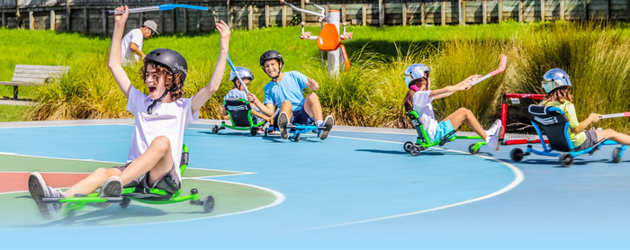 足を前後に動かすだけでグングン進むユニークなカート。簡単にスピンも出来て楽しさ倍増!