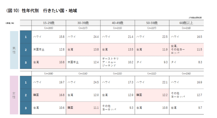2021年2月にJTB総合研究所が発表した「コロナ禍におけるこれからの日本人の海外旅行意識調査」において、性年代別の「海外旅行再開後にまず行きたい国ランキング」のトップ3に韓国がランクインしており、日本人女性における韓国の人気さがデータから伺えます。