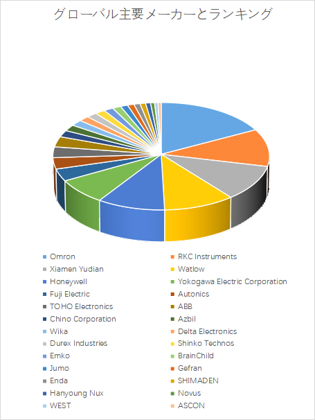 これら上位メーカーは、制御精度・応答速度・通信規格対応力の三要素を核に競争を繰り広げている。日本勢は、Omron、Azbil、Yokogawa、RKCなどを中心に、信頼性・耐環境性・多用途対応力で優位性を保持しており、製造装置との統合制御におけるノウハウが強みである。一方、欧米勢のHoneywellやABB、Watlowなどは、プロセス産業やエネルギー分野でのシステム統合力を武器に、ソフトウェア主導の高機能制御を展開している。また、中国・台湾企業(Xiamen Yudian、Delta Electronics)はコスト競争力とIoT連携対応を武器に、アジア新興市場でシェアを拡大している。市場はすでに価格競争から脱し、AI制御、クラウド連携、自己診断機能といった「知能化技術」を軸とした再編局面に入りつつある。