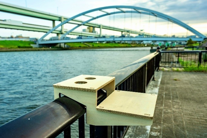 隅田川テラスの欄干にあったmizube bar を設置、隅田川を間近に感じながら飲食を楽しめます