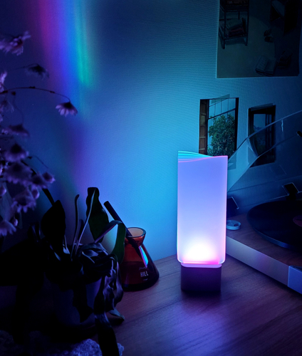 ③ 部屋や気分に合わせて光の色をワンタッチ変更。高級感あるアクリル製でそのままインテリアにも