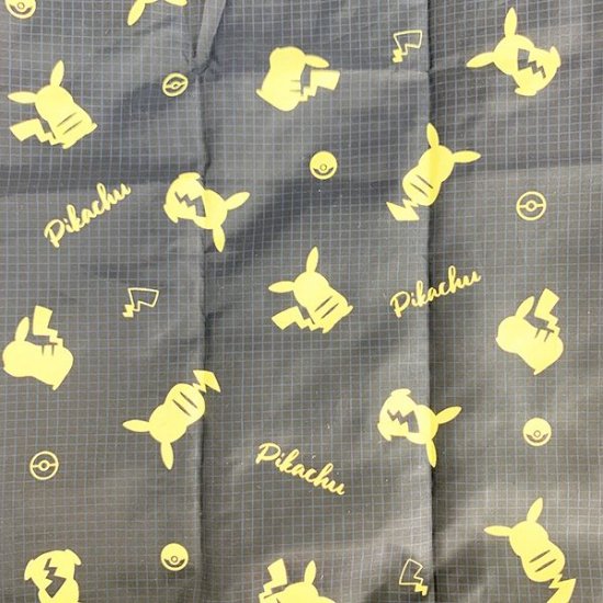 シックなブラックのエコバッグには、後ろ姿のピカチュウが散りばめられています。モンスターボールや名前も入っていて、ちょっぴりオトナなデザインです。