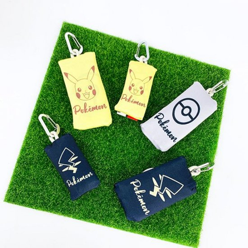 同じデザインでSサイズとMサイズの2サイズご用意していて、Sサイズは縁取りが黒・Mサイズは白の違いがあります。おまけに、収納袋にもピカチュウの笑顔のデザインが♡カラビナ付きの袋なので、バッグに付ければマスコットのようです♪