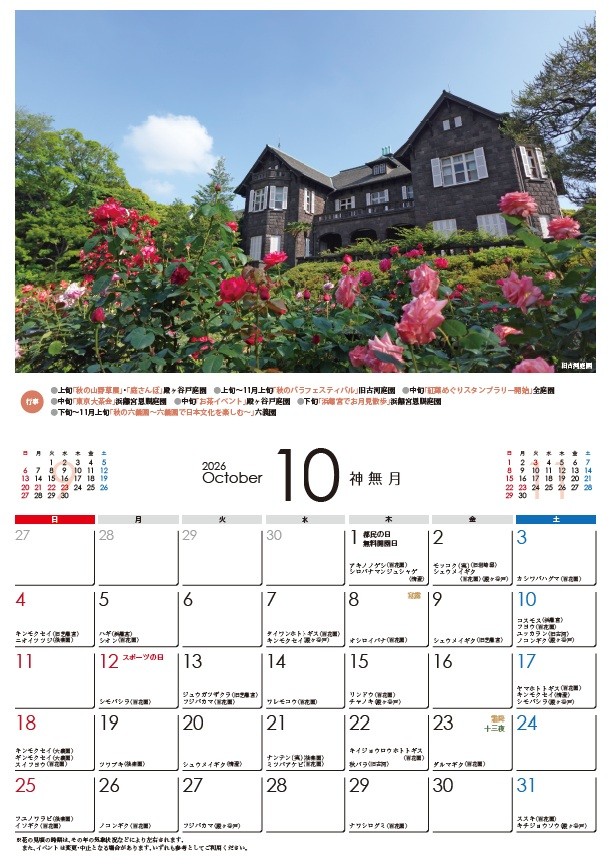毎年好評!「都立庭園カレンダー2026」10月10日より販売中!美しい庭園写真+花の見ごろ&イベント情報付き!