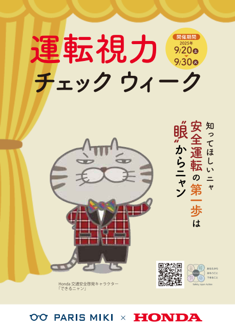パリミキ×Honda「Safety Japan Action」 交通安全啓発コラボ! 運転視力チェック週間で安全運転をサポート