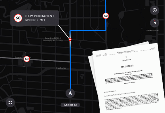 「Mapbox Electronic Horizon」は、オンボードマップマッチングとADASIS v2プロトコルをサポートし、CAN-BUSに直接統合することで、前方の道路を予測します。また、Mapboxは制限速度を95%以上カバーするため、インテリジェント・スピード・アシスト(ISA)※機能の規制要件を満たすことができます。同時に、Mapbox ADAS SDKのデータ管理アルゴリズムは、携帯電話のデータ使用量を最小限に抑え、オンラインモードとオフラインモード間のシームレスな移行を可能にします。