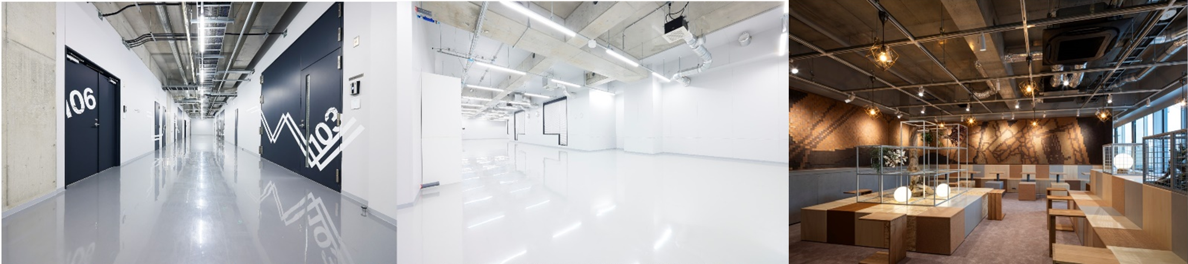 特徴(1)入居企業様が導入する機器や搬入動線を考慮した開口や廊下幅を有し、休憩スペースや会議室、荷捌き駐車場などをシェアする共用部と、一般的な賃貸オフィスより高い仕様の床荷重・電気容量を備えた専有部により、製造・研究開発施設の賃借ニーズをはじめ、一般的な賃貸オフィスに入居困難な事業を抱える企業様のマルチユースに対応可能です。