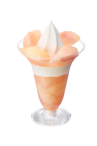 価格は約1.5倍で、白桃果肉を2倍使用した贅沢なパフェです。