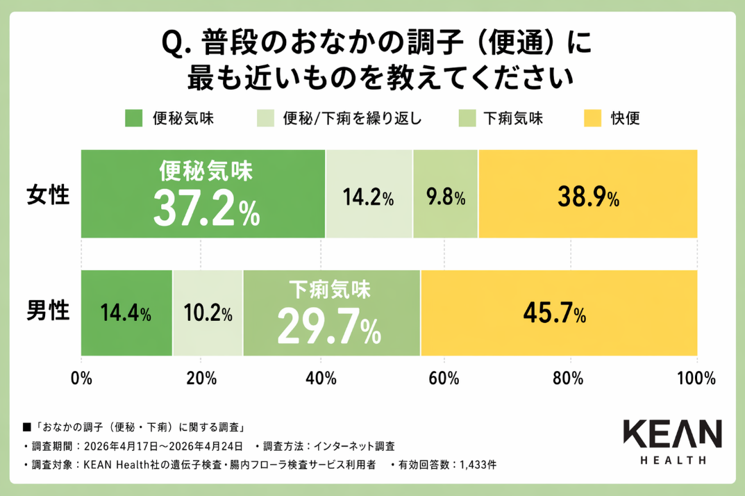 ※KEAN Health社調べ「おなかの調子(便秘・下痢)に関するアンケート」(2026年)