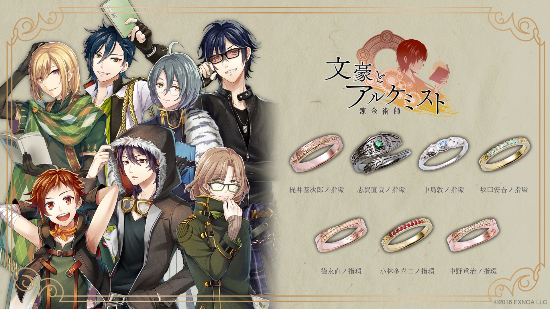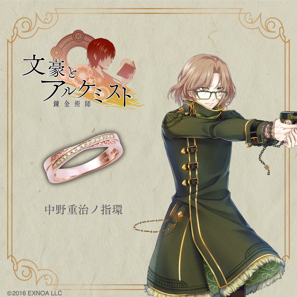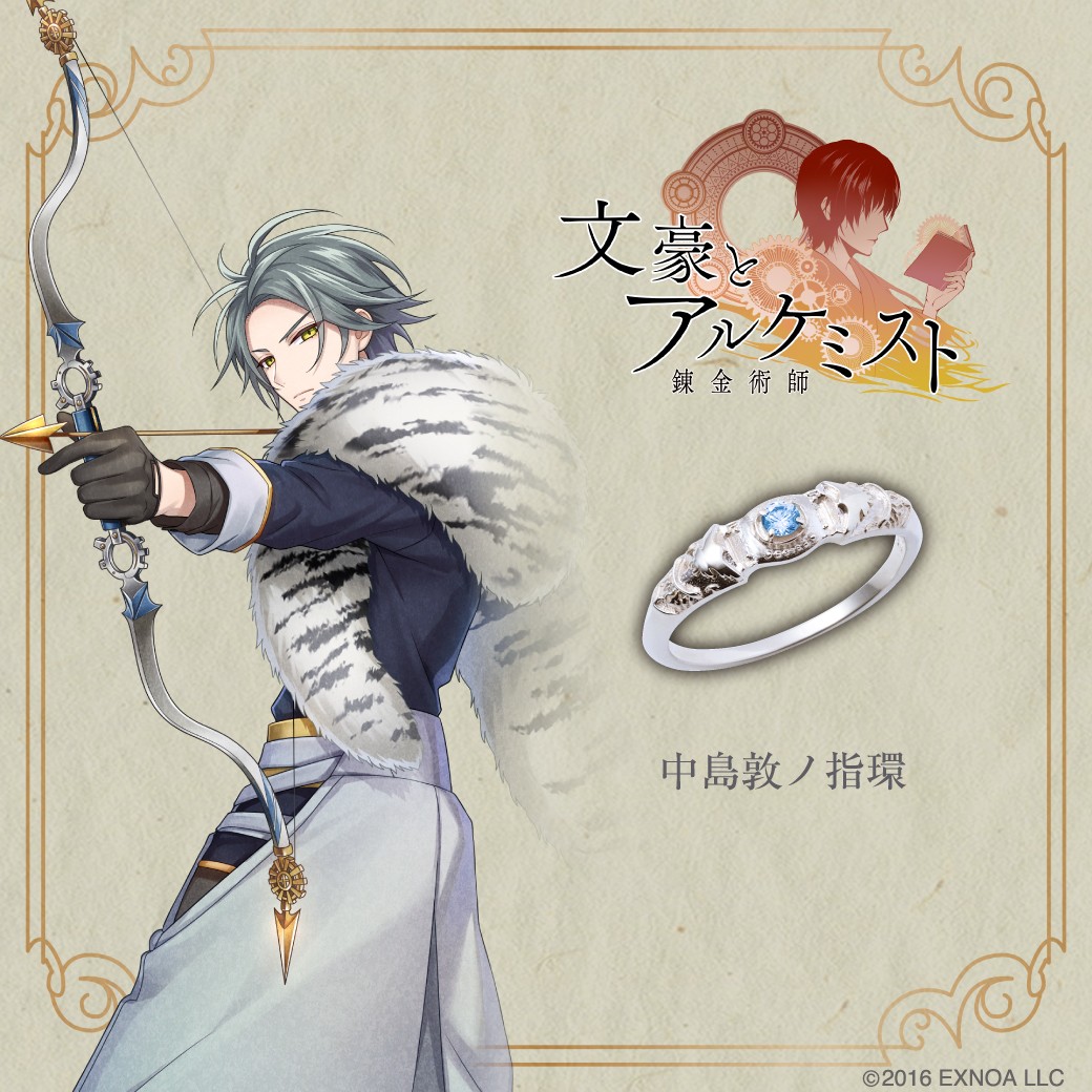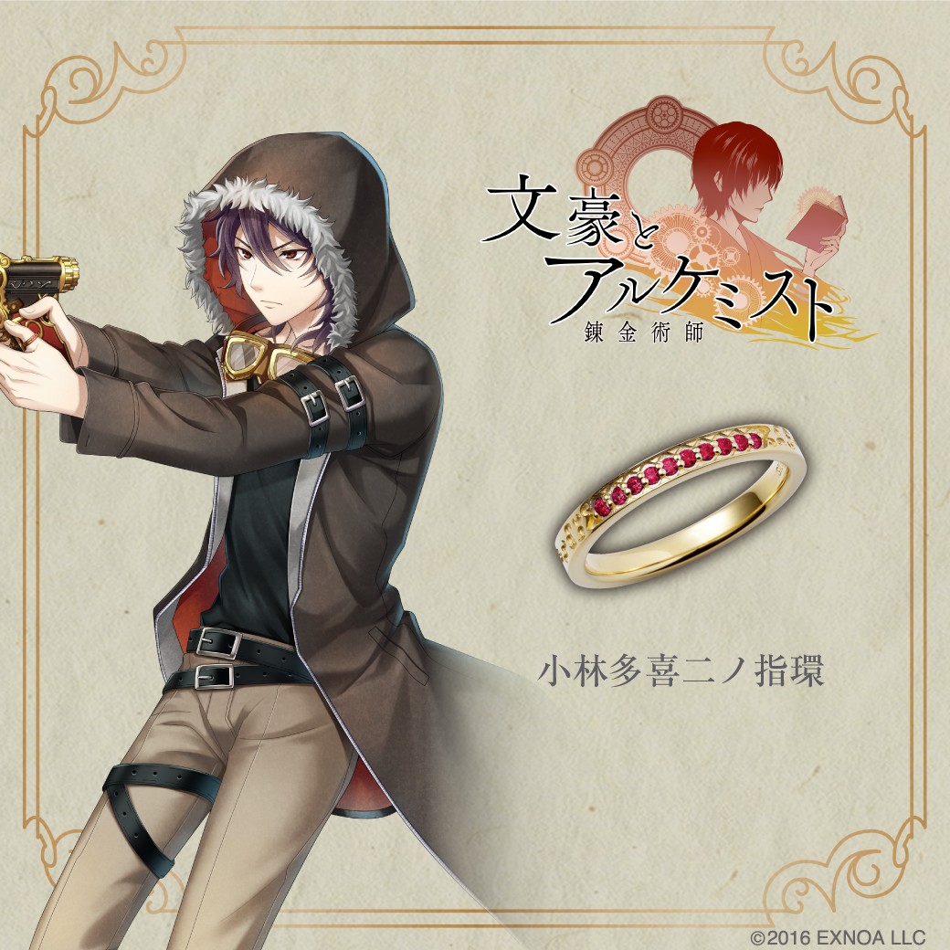 「文豪とアルケミスト」のゲーム内にて実装された装備品、各文豪の指環を再現。