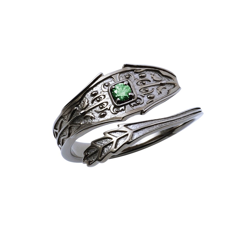 志賀の指環(弓)は上品なブラックコーティングを施した螺旋状の型に、イメージカラーストーンを配しました。ボリュームのあるデザインです。