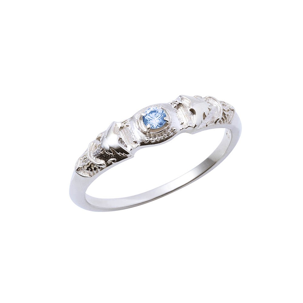 中島の指環(弓)は洗練されたシルバーカラーを施したカレッジリング風の型に、イメージカラーストーンを配しました。上品なデザインです。