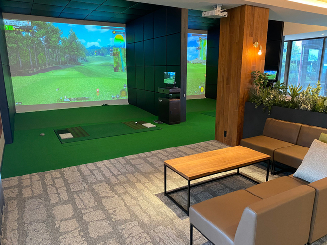 ラウンジにはシミュレーター・GOLFZON社の「VISION PLUS」を二台設置。世界の実在する有名コース210コース以上ものコースを体験出来ます。